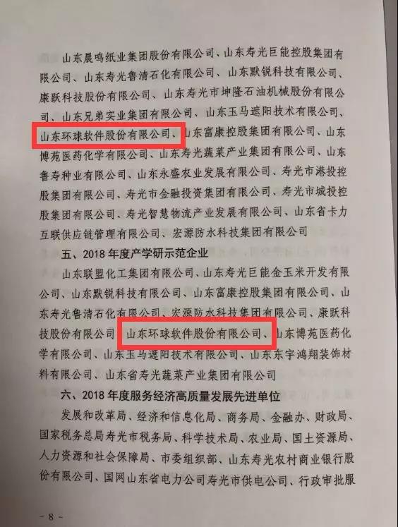 2月13日,壽光市三級干部會議在濰坊科技學(xué)院國際會議中心召開。濰坊市委副書記、壽光市委書記林紅玉等市級領(lǐng)導(dǎo)班子成員出席會議。會議回顧總結(jié)了2018年全市工作,進(jìn)一步明確了今年的工作重點(diǎn)和奮斗目標(biāo),同時(shí)表彰2018年度先進(jìn)集體和個(gè)人。環(huán)球軟件喜獲“2018年度新舊動能轉(zhuǎn)換先進(jìn)企業(yè)”和“2018年度產(chǎn)學(xué)研示范企業(yè)”兩項(xiàng)榮譽(yù)稱號。