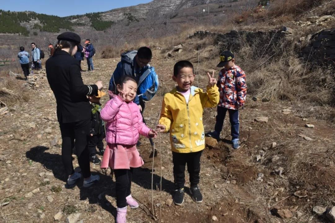 小朋友和小樹苗合影