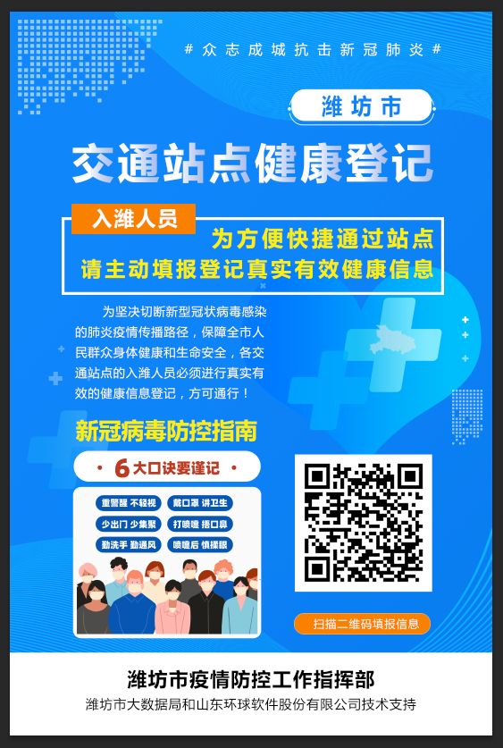 同時(shí),濰坊市疫情防控工作指揮部委托環(huán)球軟件研發(fā)了交通站點(diǎn)健康登記系統(tǒng),這個(gè)系統(tǒng)針對通過火車站、汽車站、機(jī)場等交通站點(diǎn)入濰人員進(jìn)行登記。入濰人員掃描二維碼,進(jìn)入系統(tǒng)填寫個(gè)人健康信息。交通站點(diǎn)健康登記系統(tǒng)進(jìn)一步加強(qiáng)入濰人員管理,有效配合相關(guān)部門進(jìn)行防疫檢查,方便人員安全出行,減少交叉感染風(fēng)險(xiǎn)。