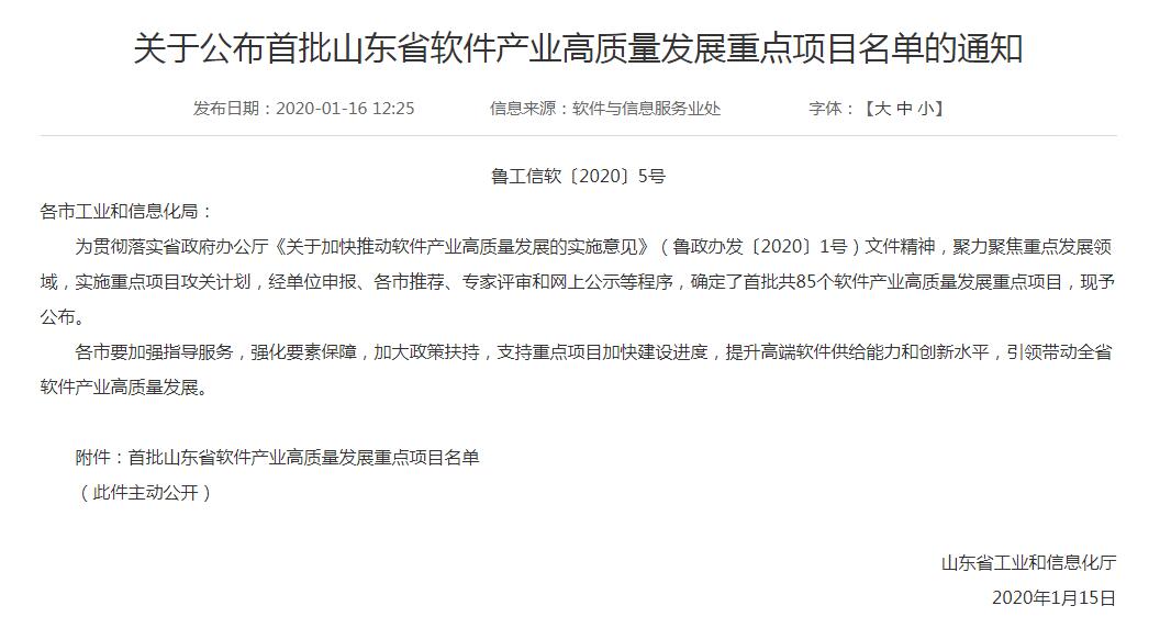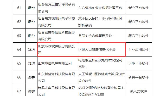 2020年1月16日,山東省工業(yè)和信息化廳公布“首批山東省軟件產(chǎn)業(yè)高質(zhì)量發(fā)展重點(diǎn)項(xiàng)目”名單,由環(huán)球軟件自主研發(fā)的區(qū)域人口健康信息平臺(tái)成功通過(guò)認(rèn)定。