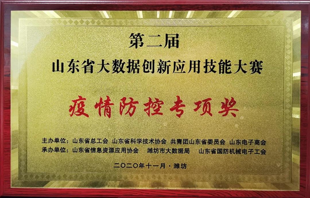 2020年11月17日,由環(huán)球軟件開(kāi)發(fā)的“壽光云APP”在第二屆山東省大數(shù)據(jù)創(chuàng)新應(yīng)用技能大賽中,榮獲“第二屆山東省大數(shù)據(jù)創(chuàng)新應(yīng)用技能大賽一等獎(jiǎng)”和“疫情防控專項(xiàng)獎(jiǎng)”兩項(xiàng)大獎(jiǎng)。