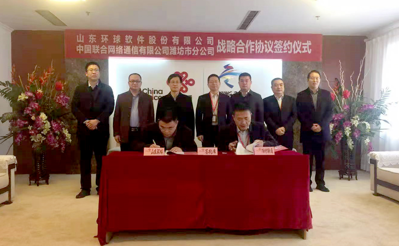 12月16日,山東環(huán)球軟件股份有限公司(以下簡(jiǎn)稱(chēng):環(huán)球軟件)與中國(guó)聯(lián)合網(wǎng)絡(luò)通信集團(tuán)有限公司濰坊市分公司(以下簡(jiǎn)稱(chēng)中國(guó)聯(lián)通濰坊分公司)正式簽署戰(zhàn)略合作協(xié)議。