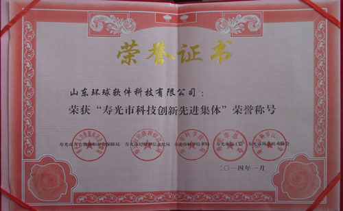 環(huán)球軟件榮獲2013年度壽光市科技創(chuàng)新成果一等獎
