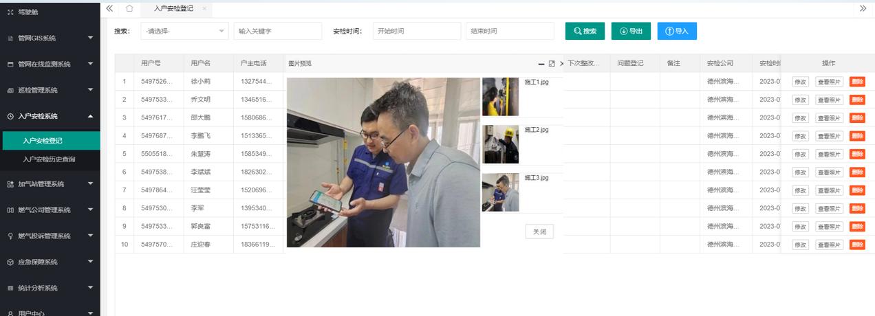聯(lián)動管理,實(shí)現(xiàn)燃?xì)夤編?、從業(yè)人員庫、GIS庫、燃?xì)獍矙z用戶庫、應(yīng)急處置庫等數(shù)字化管理,實(shí)現(xiàn)政府監(jiān)管部門對燃?xì)馄髽I(yè)信息的全盤掌握。